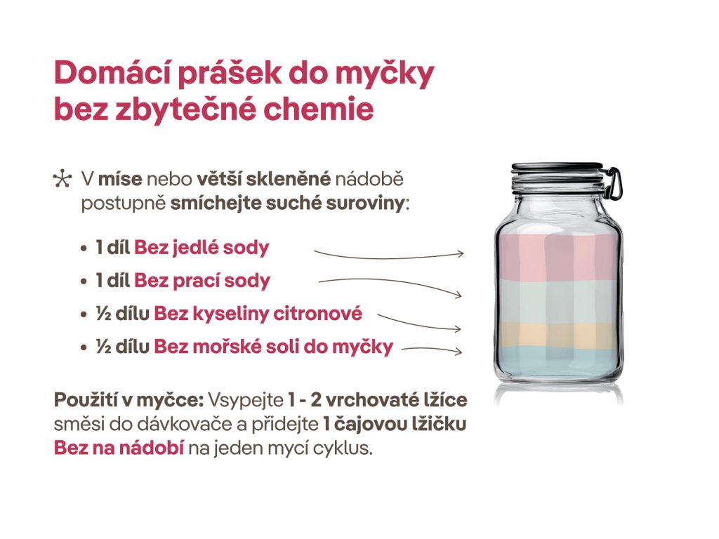| Účel použití: | domácí ekologický prášek do myčky, domácí ekologické tablety do myčky |
